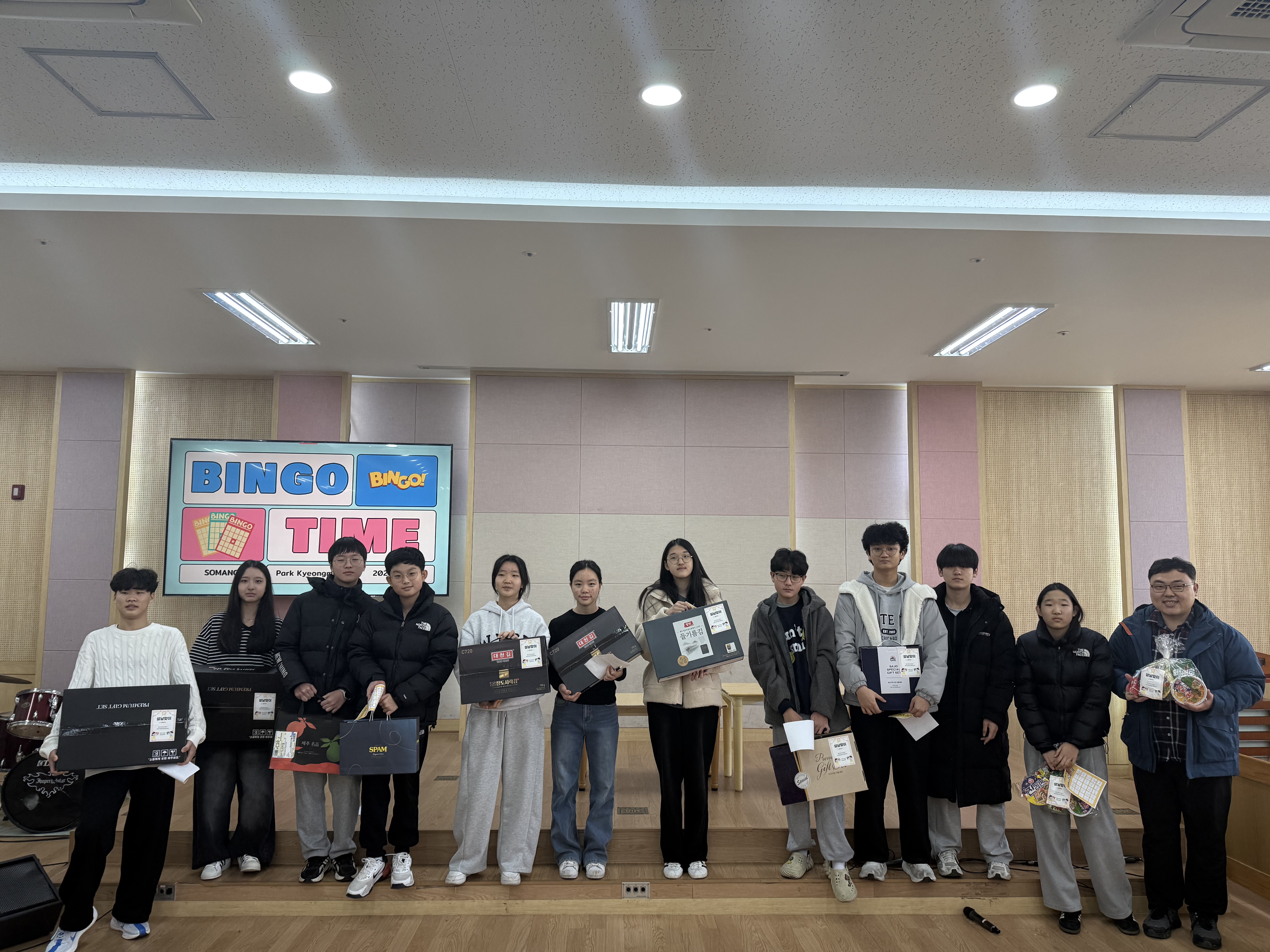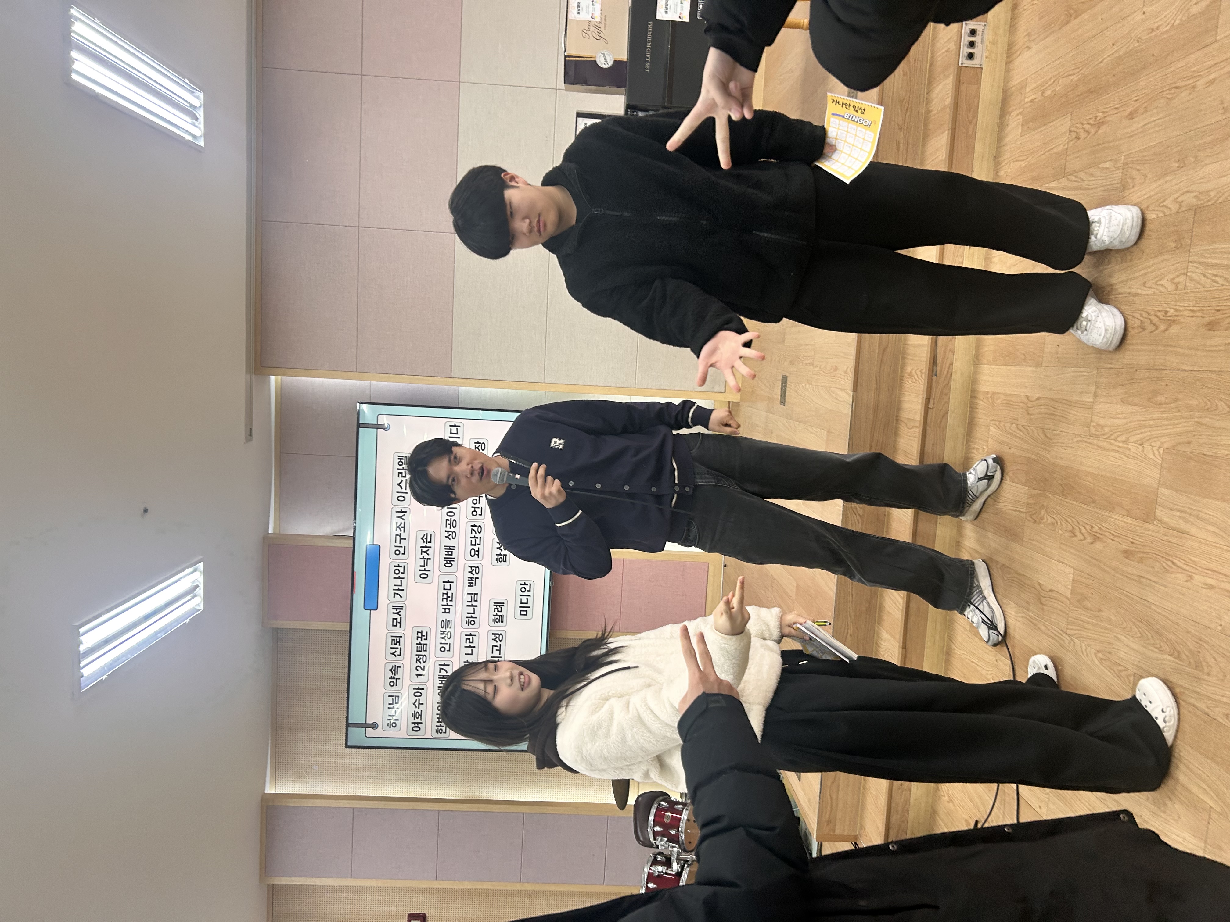 1. 명절 맞이 레크리에이션(빙고 게임)이 있었습니다. 매우 푸짐한 상품이 걸려 있어서 그런지 우리 중등부 친구들이 무서운 집중력을 보여주었었어요.^^ㅋ 상품 받은 친구들(+선생님) 축하드리며, 모두모두 즐거운 설명절 되셔요.