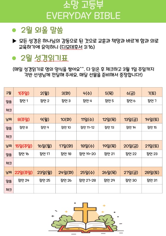 *2부 순서: 공과공부, 고등부 성경 읽기 시작