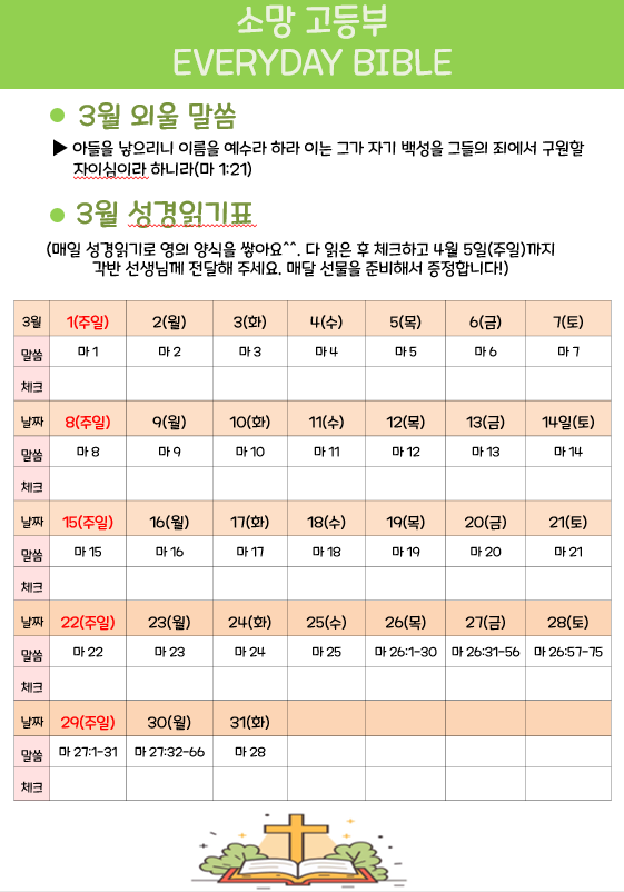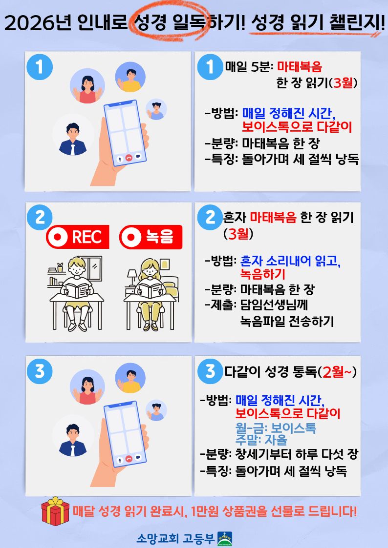 말씀과 기도로 거룩해지는 고등부! 지난 2월 한 달간 진행된 성경읽기 챌린지의 귀한 결실을 함께 축하합니다!